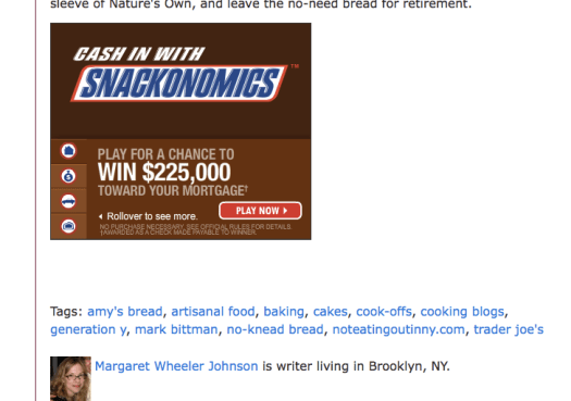 Don’t want to put in the time and effort such a food lifestyle requires? Fine. But you don’t have to make it sound like those of us who do are utterly wasting our time. You could just reach for the Snickers bars advertised on Ms. Johnson’s article– oh wait, now that whole piece makes soooooo much more sense.