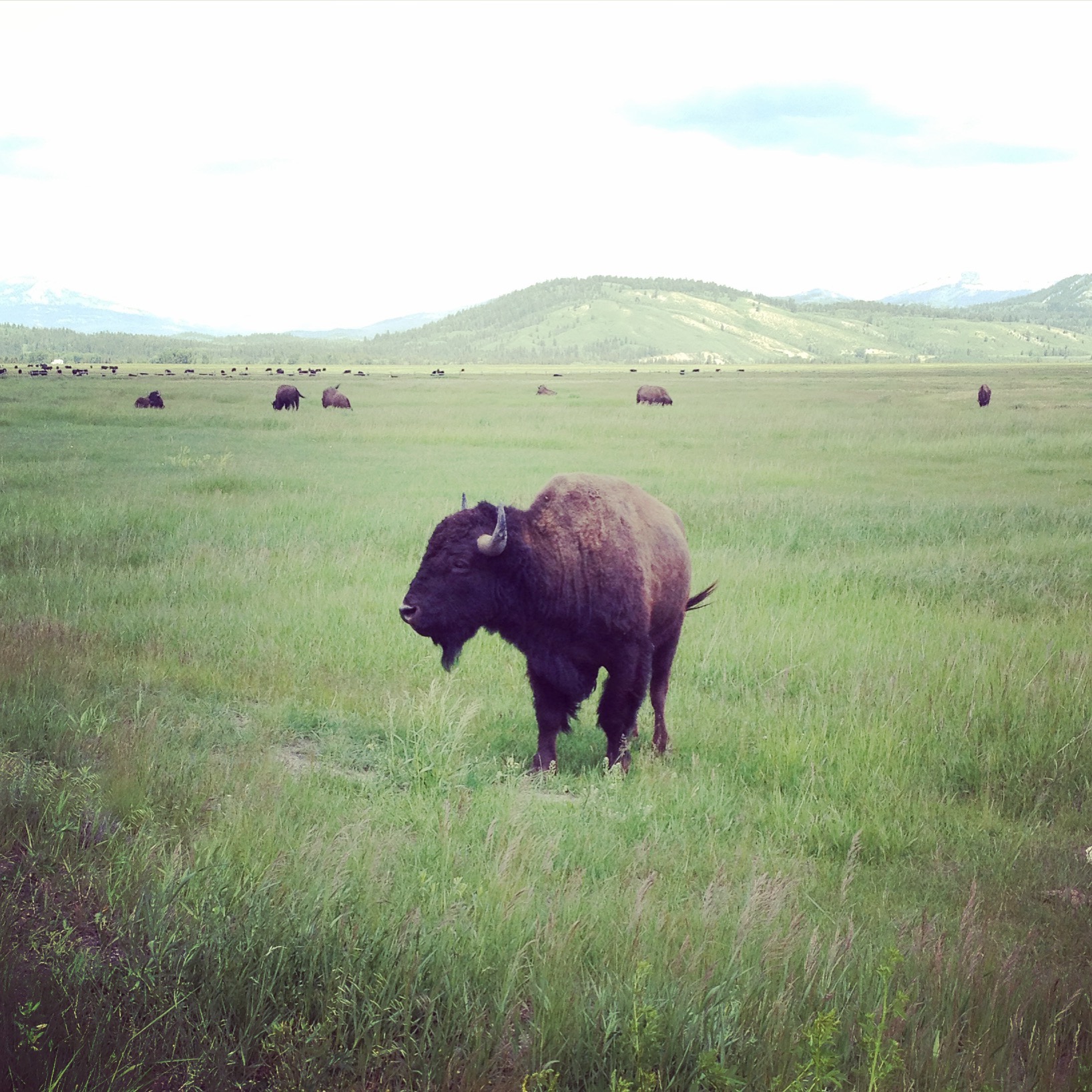Any of our photos of bison that appear to have been taken closer than that were achieved via zoom lens or from inside our vehicle. I was actually fairly terrified that we would encounter a bear on our hikes, and we talked and made noise the whole time to help keep the bears away. No photo is worth risking your life. You can still get amazing photos through the power of zoom.