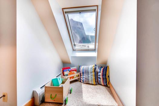 Not just a cute reading nook, this loveseat in the master is also a twin bed.