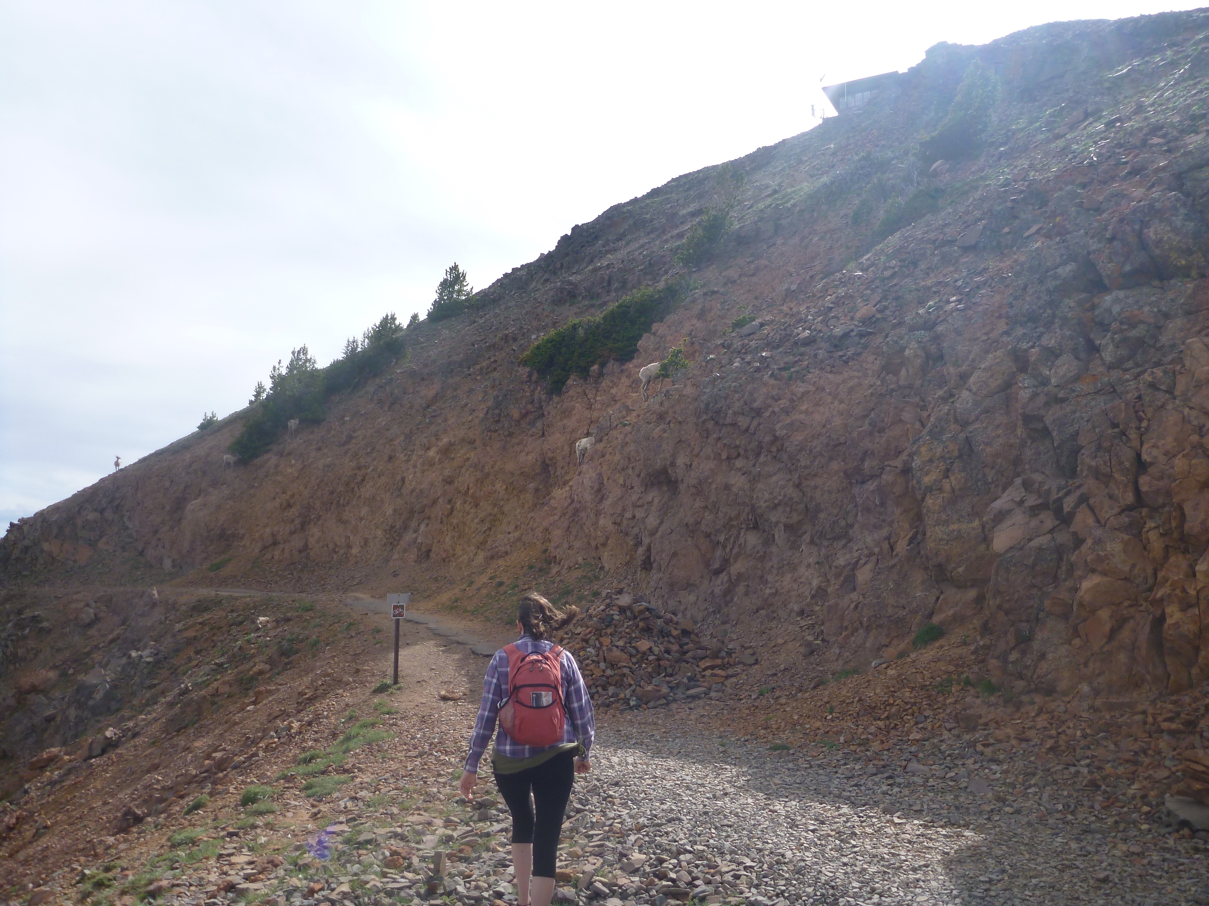 Things got slightly more interesting when we got SUPER close to a herd of mountain goats on our climb back down. We quickly realized we were between some adults and some babies and backed off and gave them space. Eventually they got off our path, but later, when we recounted the story to someone back at our lodge, he said he had heard of someone who was gored by a mountain goat and DIED. The idea that it would gore us hadn’t even crossed our minds. We thought at worst they’d head-butt us off the trail!