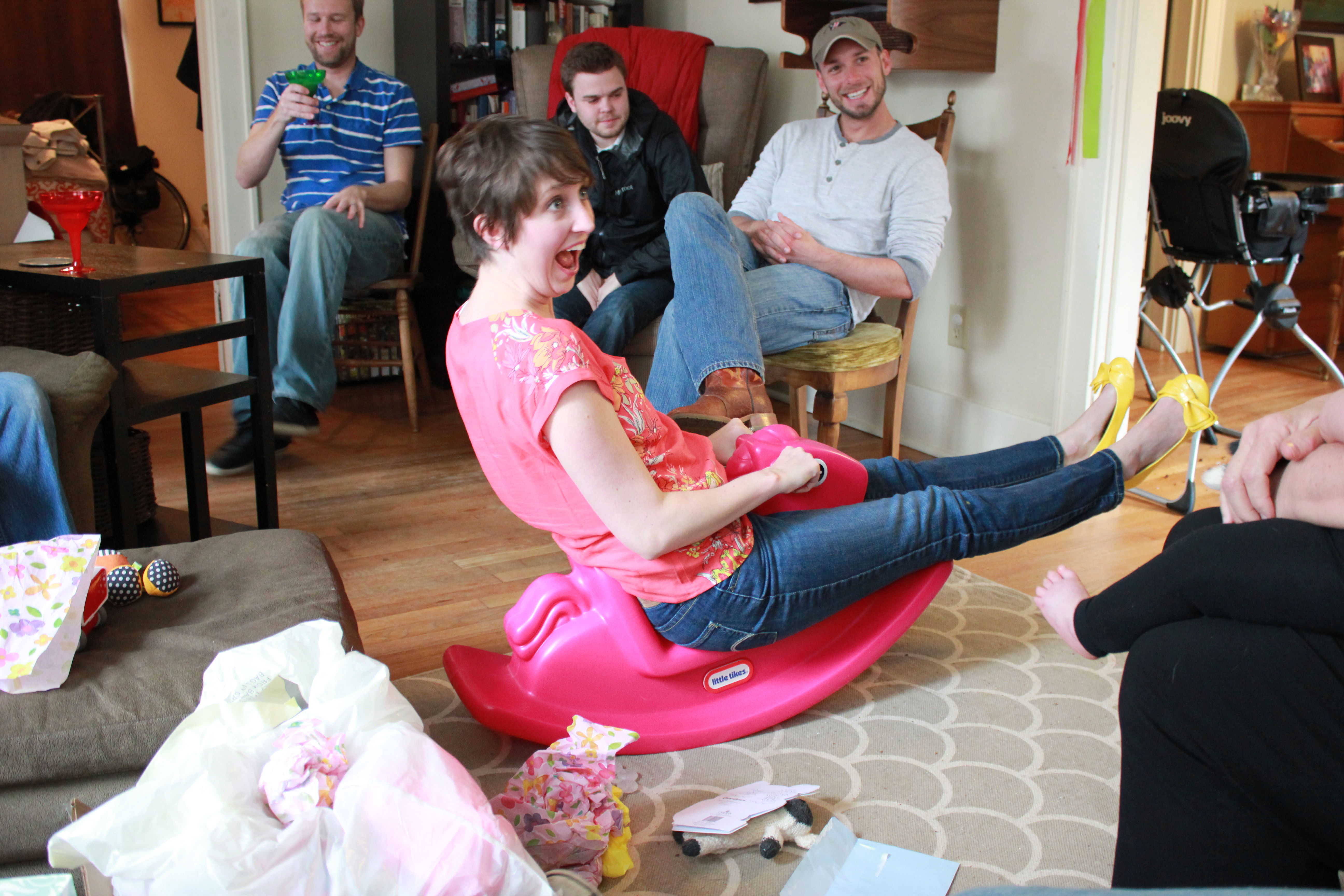 Currently, I just toss the dirty diapers right in the wetbag and then they go straight into the wash, but we are rapidly approaching the end of this simple era because it’s almost solid food time. Solid food poops are not water soluble like formula and breast milk poops. With solid food poops, I will have to “plop” what I can into the toilet, and am planning to get a diaper sprayer to rinse them off into the toilet. When we leave the house, I will use flushable liners.