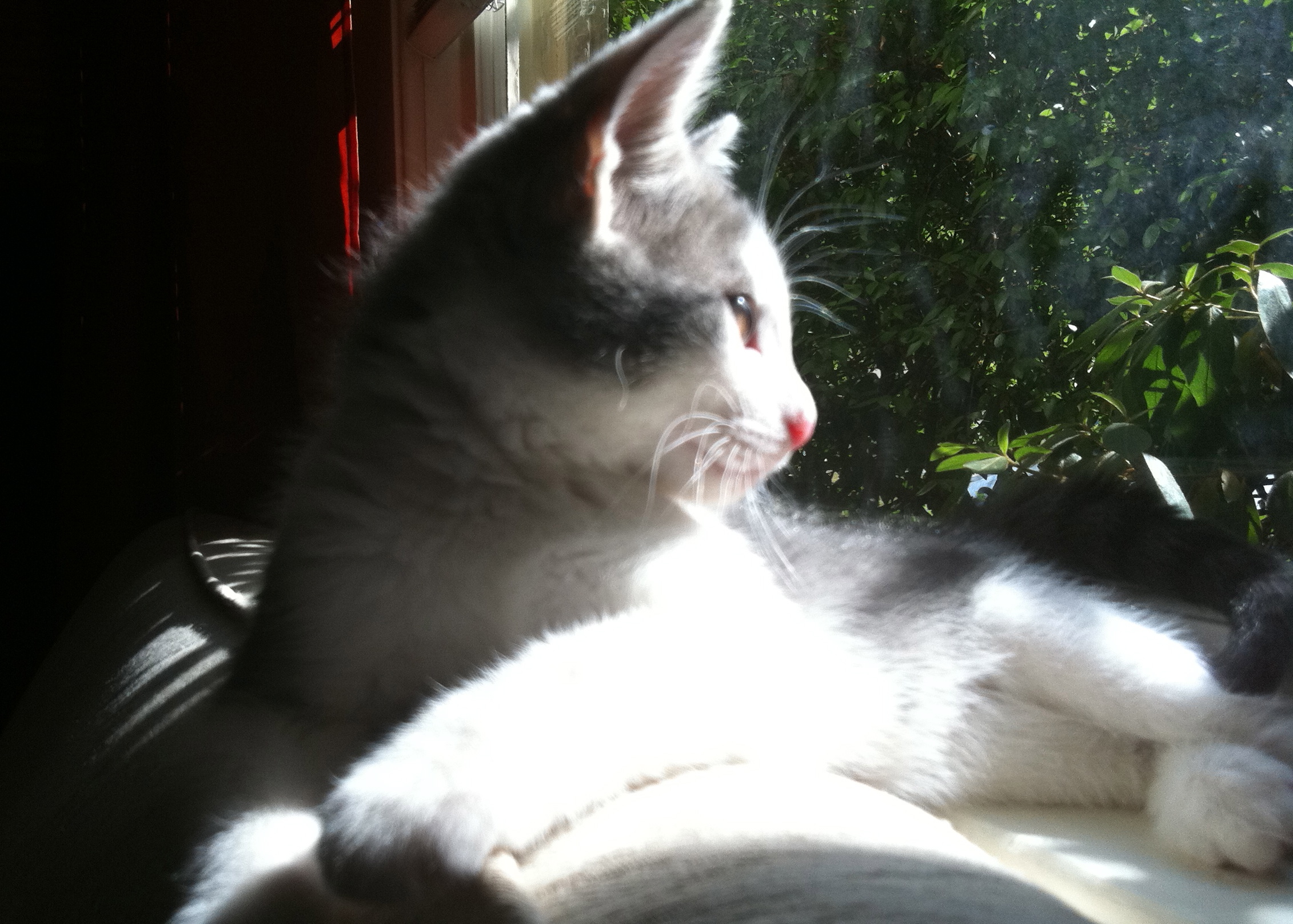 Four years ago today, we were working in our downtown garden when a homeless friend named Justin walked up holding an impossibly tiny, impossibly flea-covered kitten. “I just found him,” he said, “and I can’t take care of him and don’t want him to be a hobo cat. Can you take him?” I took one look at the tiny furball and knew I had to help him find a home.