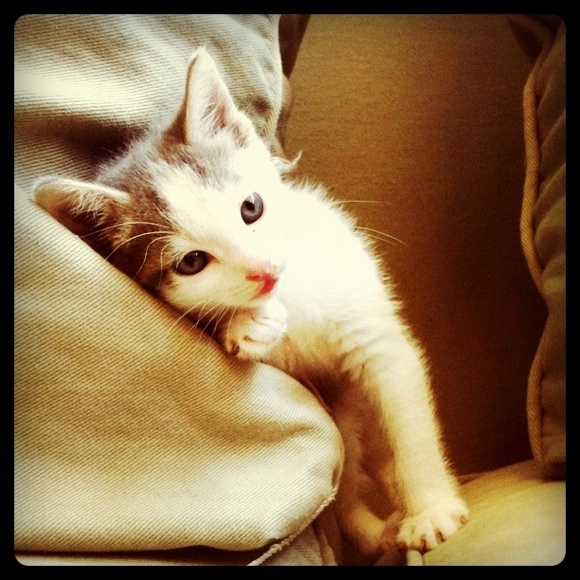 I took him home, gave him a bath, picked hundreds of fleas off of him, and promptly fell in love. I didn’t want to fall in love, though. We called him Tinycat because we weren’t giving him a name because we were. not. keeping. him. That resolve lasted until the night before he was supposed to go to a new home, and Jon and I both cried and realized we couldn’t bear to part with him.