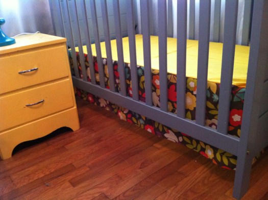 Iron out any creases your fabric has gotten throughout the process, and you’re FINISHED! Put your crib skirt on your crib and admire your handiwork: