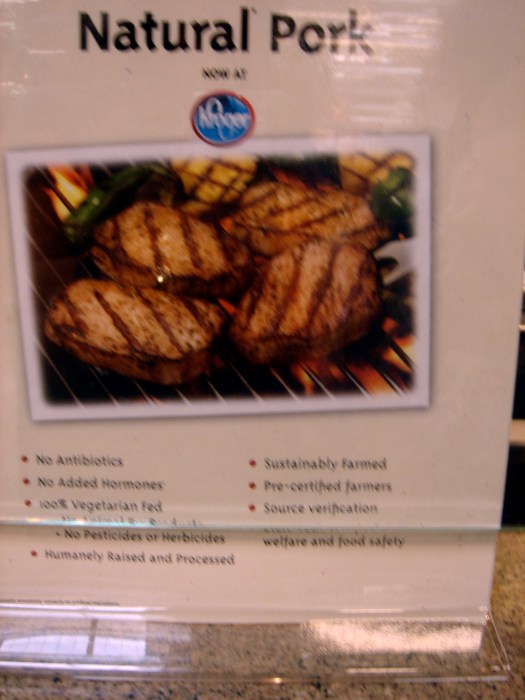 I was also very happy to hear from the guys in charge of the meat and seafood departments. Kroger apparently is very big on voluntarily labeling country of origin and wild-caught/farmed on its seafood, which is really helpful for me as I try to eat sustainably when I consume seafood (for a consumer’s guide to sustainable seafood, check this site out). We also learned that Kroger goes above and beyond national standards and employs its own inspectors to make sure its seafood and meat is of the freshest quality. And when it comes to meat, I was happy to see that they had a number of all natural, hormone/antibiotic/nitrite free, vegetarian-fed, sustainably raised meat to choose from, including pork products. I have cut down a lot on my meat production in order to afford to eat natural/sustainable/ethical meat when I do consume meat. Beyond the products that made me happy because they fit into my food values, I have to say that the folks working the meat and seafood area obviously take a lot of pride in what they do and have a passion for their jobs. That’s fun to see!
