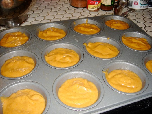 I looked at a few different pumpkin muffin recipes, and this is what I cobbled together.