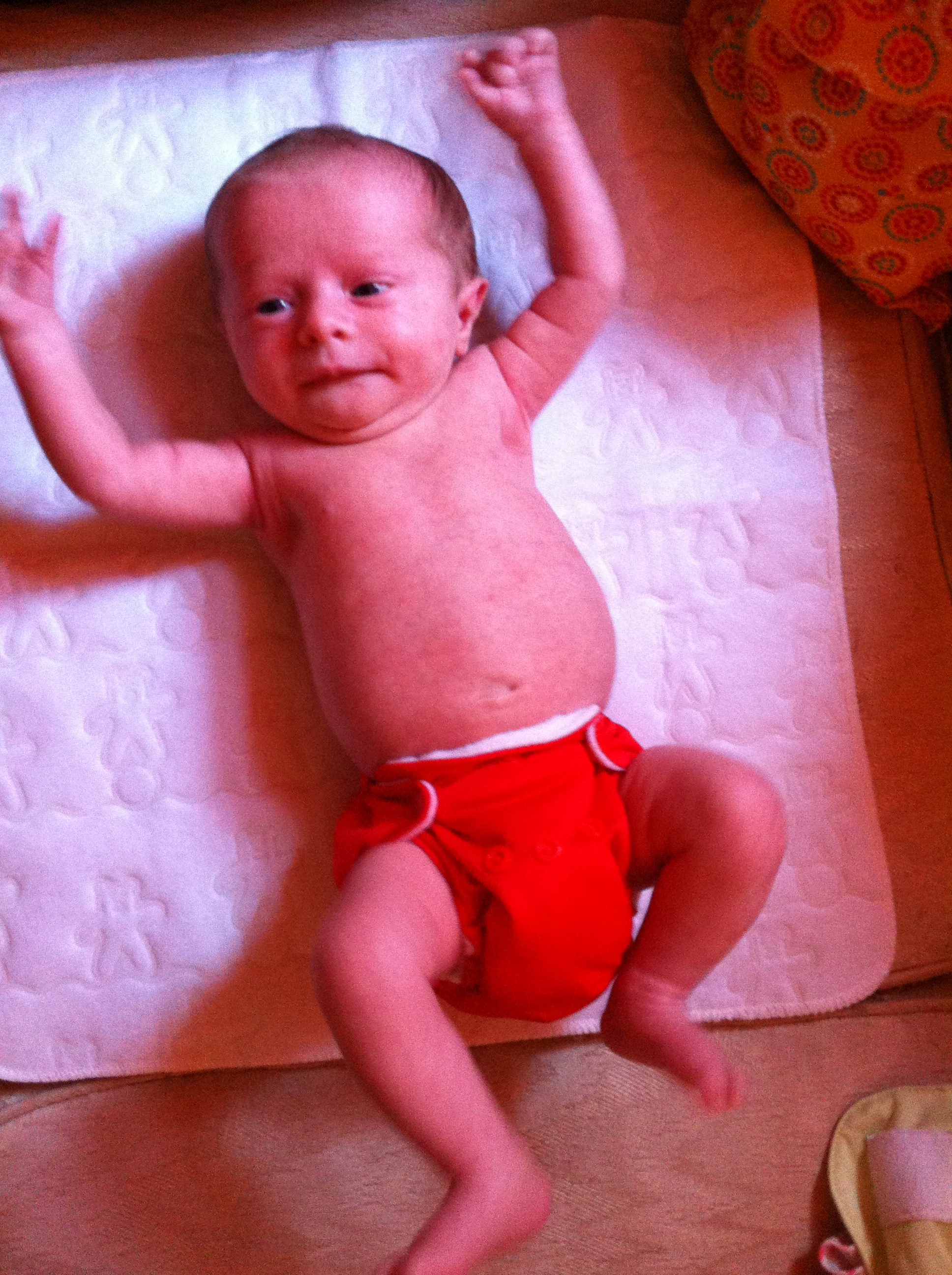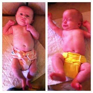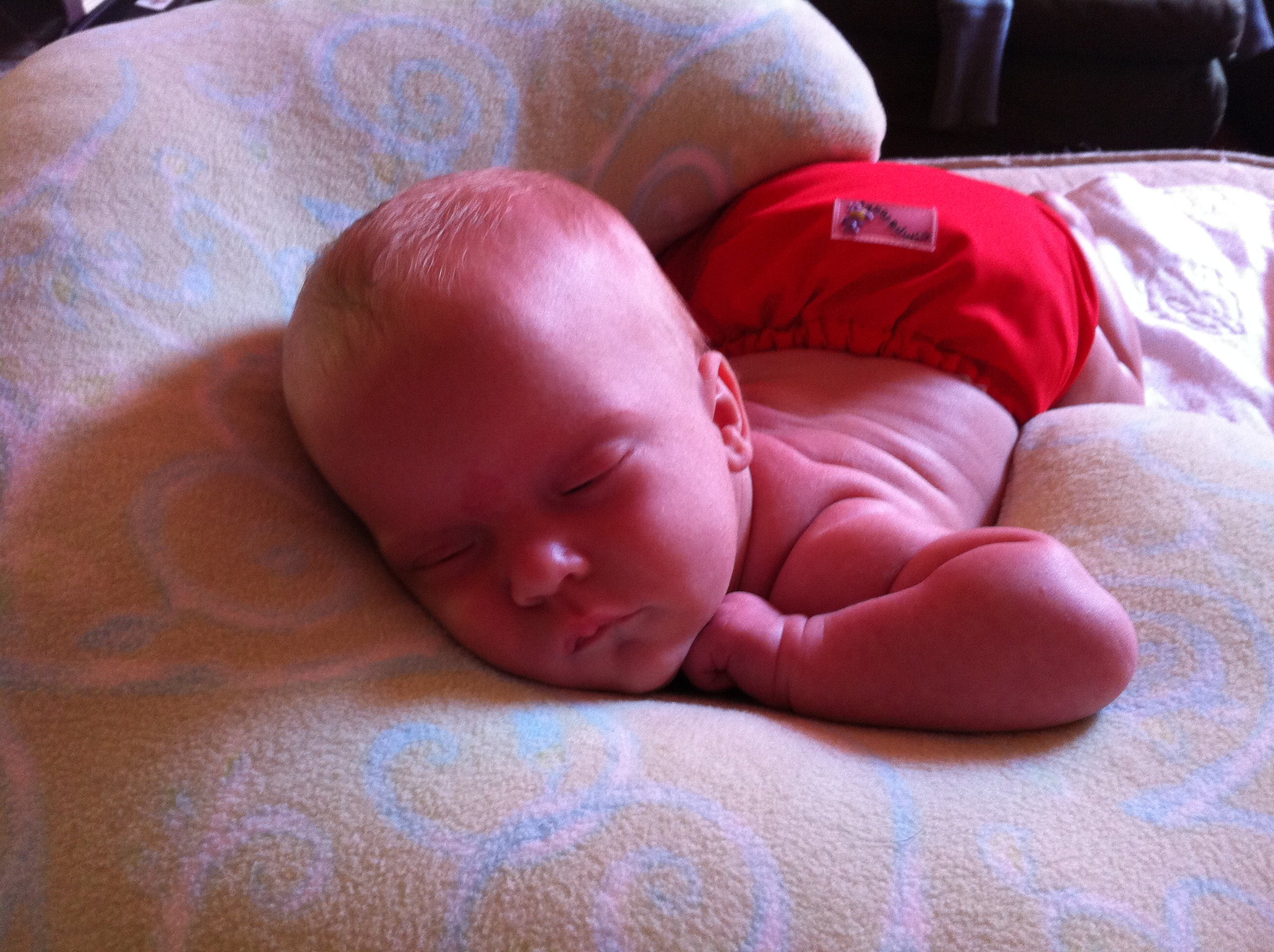 Another thing that’s working out great is cloth diapering. I was really hoping it would work for us, and it totally is. I don’t find the cloth diapers to be any more disgusting to deal with than the disposables we used for the first 2-ish weeks, and when we have babies spitting up and such all the time, we’re already doing an extra load of laundry every day anyway. If anyone is particularly curious about what we’re doing, I thought I’d give a quick rundown.