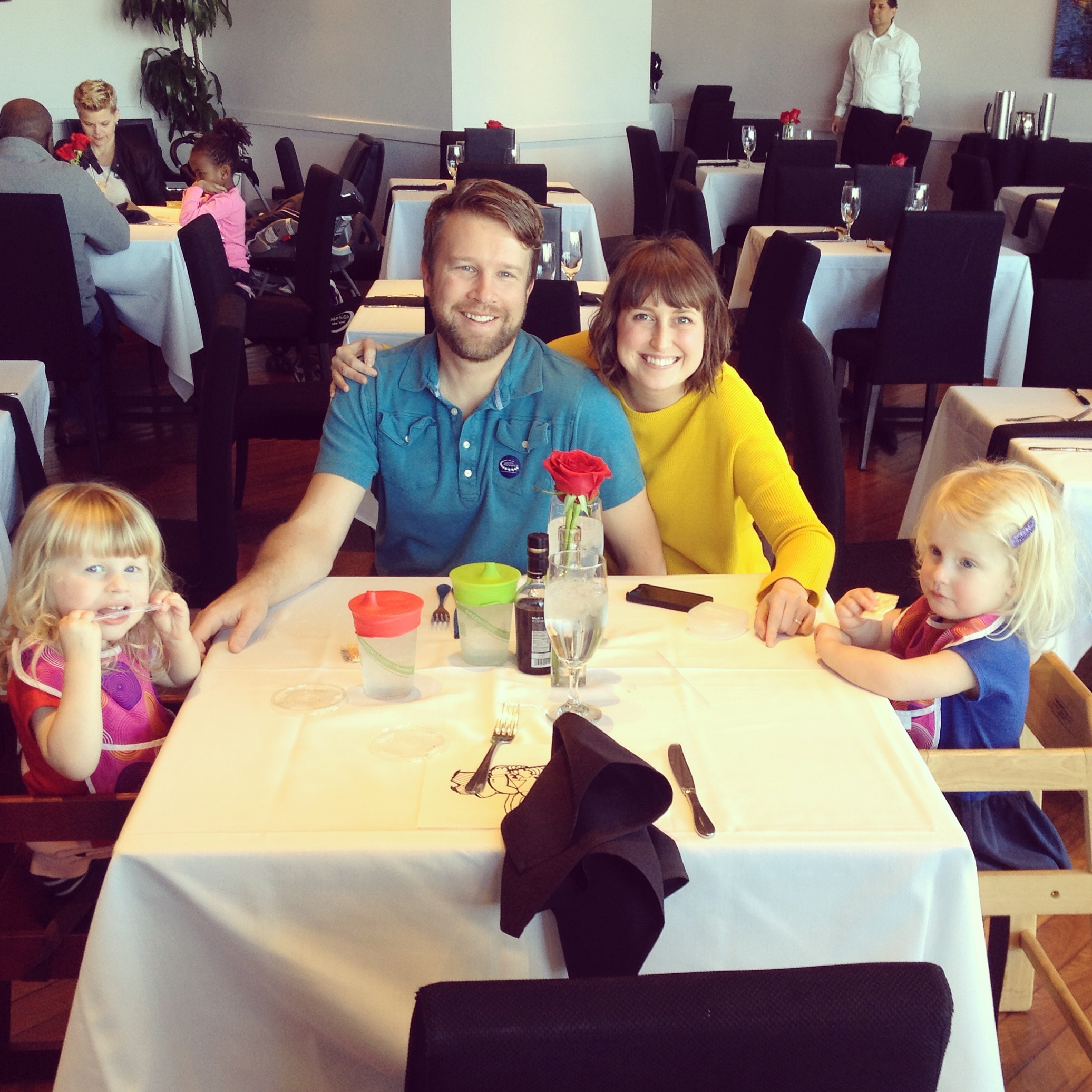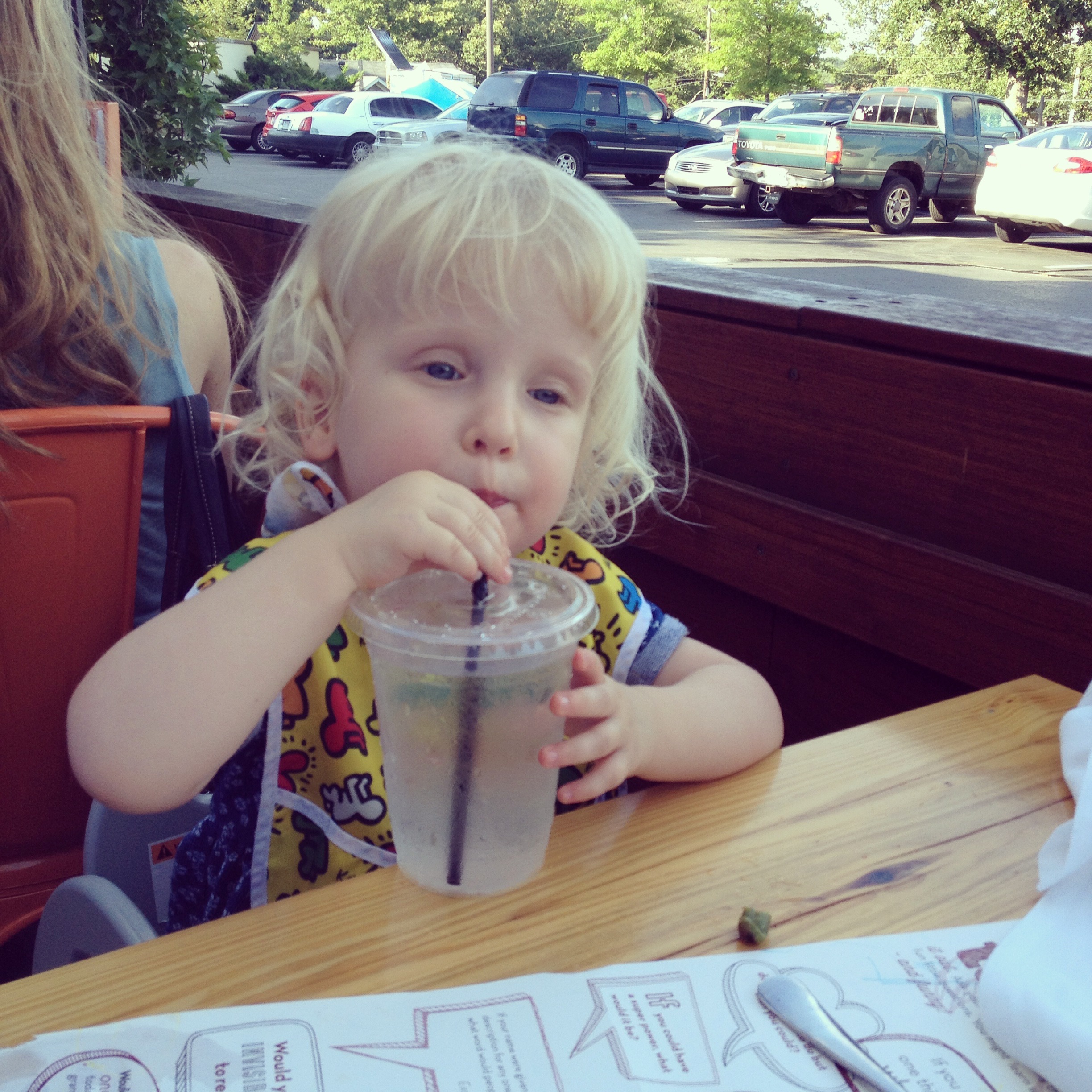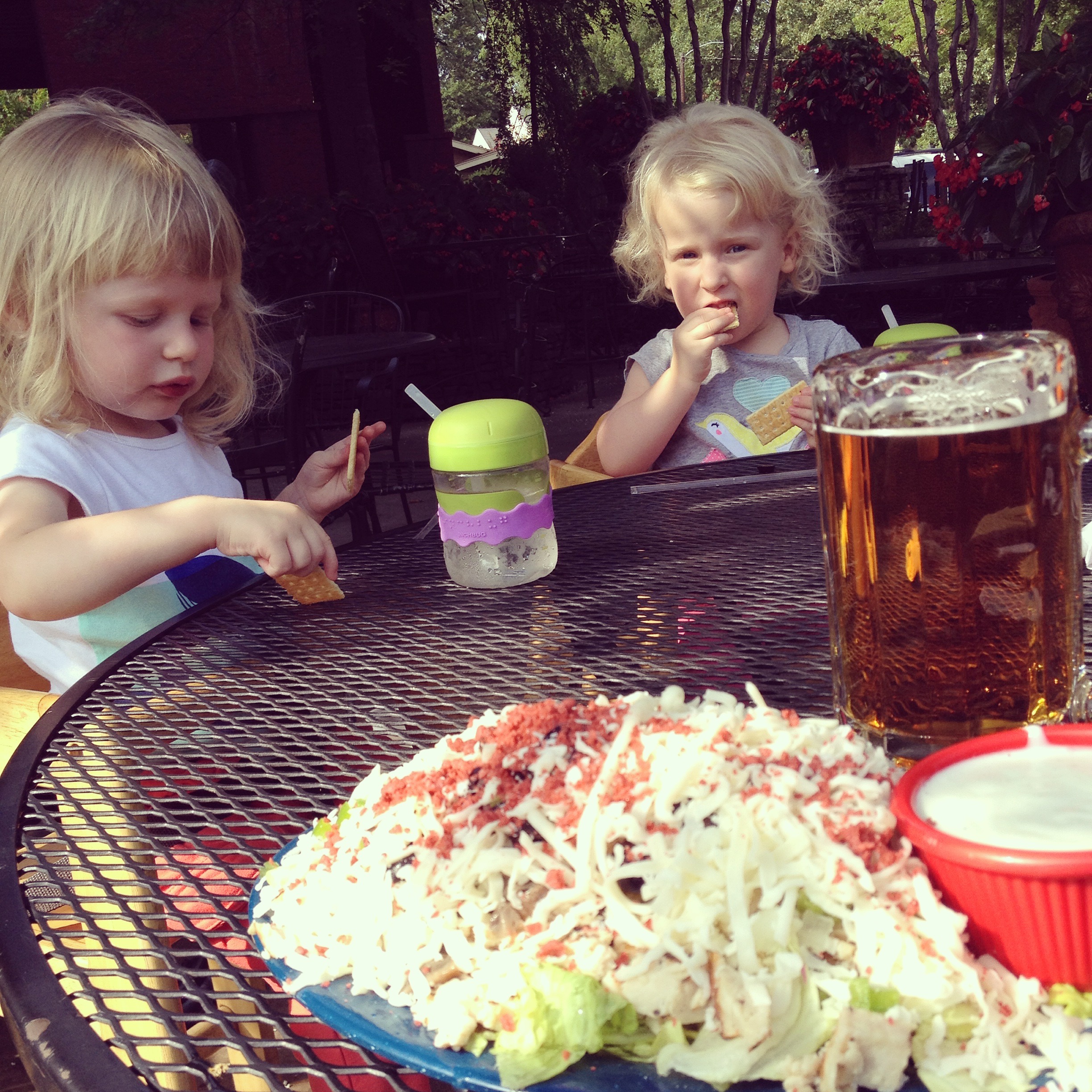 Last night we had one such perfect night, and after we got the kids to bed and fixed our ritual fancy drink, my husband and I clinked our glasses and remarked on what a great night we’d had. It started when both kids actually took good naps, so we were primed and happy as we set out. We met up with some friends with a son our girls’ age at a local pizza place, and everyone sat in their chairs and happily ate their food, which was served promptly, and no one spilled any drinks or threw any fits. The kids entertained each other with silly antics and enjoyed sprinkling their own cheese on their own pizza, and we got to chat with some actual grownups, too.