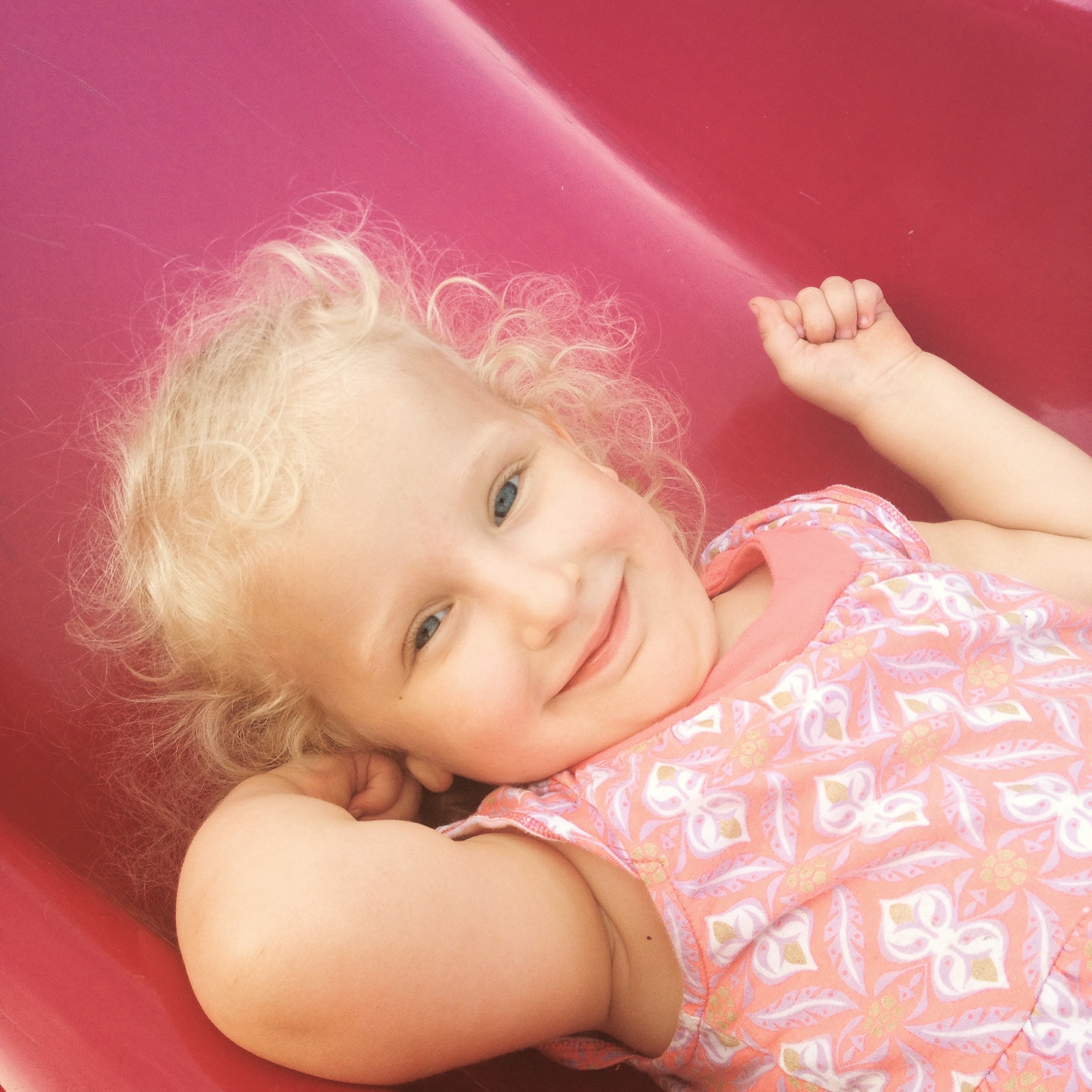 It was sunny and 50 degrees at the park. We had the whole place to ourselves. My girl’s hair shone in the winter sunlight, and I watched her little curls flying as I pushed her on the swings. “Swing higher, Mommy!” We didn’t talk much; we just soaked up the sun together. I love that she chose a “baby swing” for herself, just like when I ask her if she’s big or little, she tells me she’s a “widdle gurl.” Darling, you can stay my little girl forever. She played in the sand and made me a “castle.” She braved the big slide, the one with two humps. Then we did some more swinging and came home for lunch. I let her watch some Elmo to wind down before nap, and she snuggled in my lap while I breathed in her coconut-scented hair and kissed her sweet cheeks.