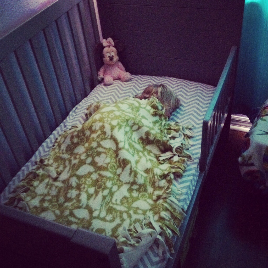 This was proven again recently when, upon hearing my girls one morning, just woken up across the hall from us, babbling and giggling to each other across the room in their cribs, I thought, “These kids are ready for toddler beds. I bet they’d like to get up and play and cuddle and chat with each other in the mornings, instead of being trapped in their cribs.” So, that day, my husband and I took a side off of each crib and put up the toddler rail, and just like that, our babies (aged 19 months) had toddler beds.