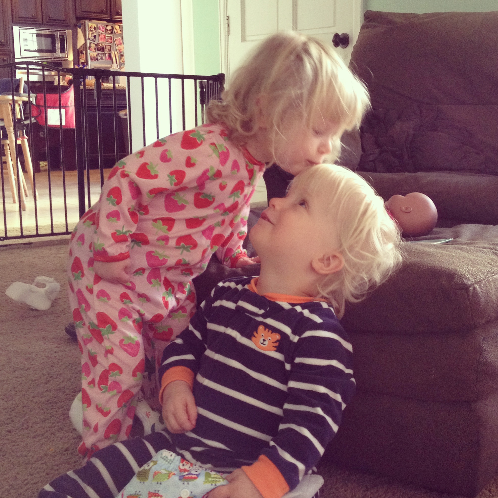 Mark it down in the baby book blog: it’s the first time I have ever heard either one of them say “I love you” to the other one. Sure, they show it– they like to hug and kiss and hold hands, and I sometimes find one in the other’s bed, but this was the first instance of verbal love between the two of them. It exploded my heart.